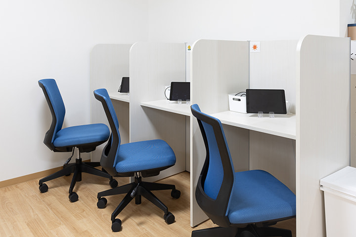 療育中は保護者様用が療育の様子をモニター観覧したり、ご相談などをうける『モニターコーナー』でお過ごしください。