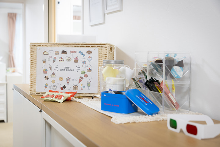各種お飲み物やお菓子をご用意しておりますので、個室でごゆっくりお過ごし下さい♪