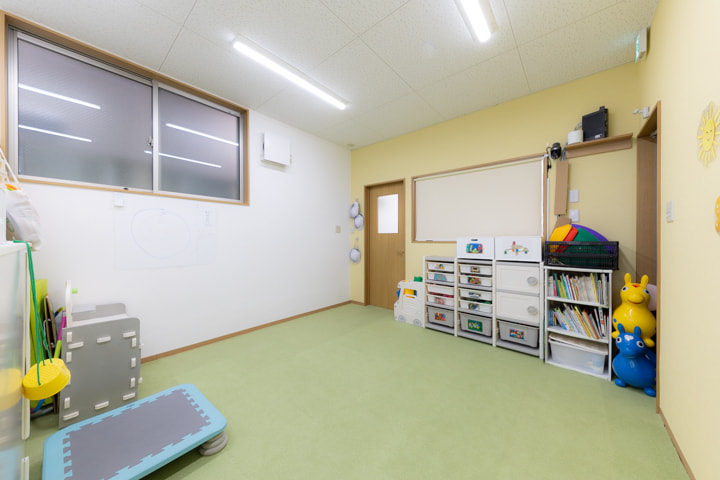 本事業所には運動ができる『プレイルーム』、個別療育を行う『学習室』、ご両親が療育の様子をモニター観覧したり、ご相談などをうける『面談室』がございます。